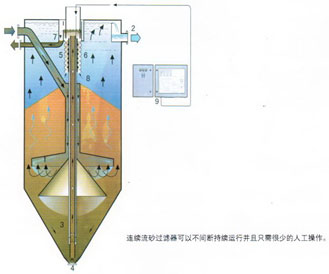 水的净化与砂的清洗同时进行,因而过滤器可以不受干扰地连续进行。