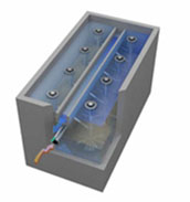 大功率连续流砂过滤设备通常由过滤组件组成并建在水泥池中。过滤组件由不锈钢或玻璃钢锥形底部和内部构件组成,水泥池和独立式过滤哪一种方式更经济要根据实际的过滤方案与具体的条件确定。 这种类型过滤器安装时,所有过滤单元(每个单元由多个过滤组件组成)共用一个砂床。一套设备实质上没有过滤面积限制,因此连续流砂过滤器可以应用在处理相当于100000或更多人口用水的大型水厂和污水处理工厂。